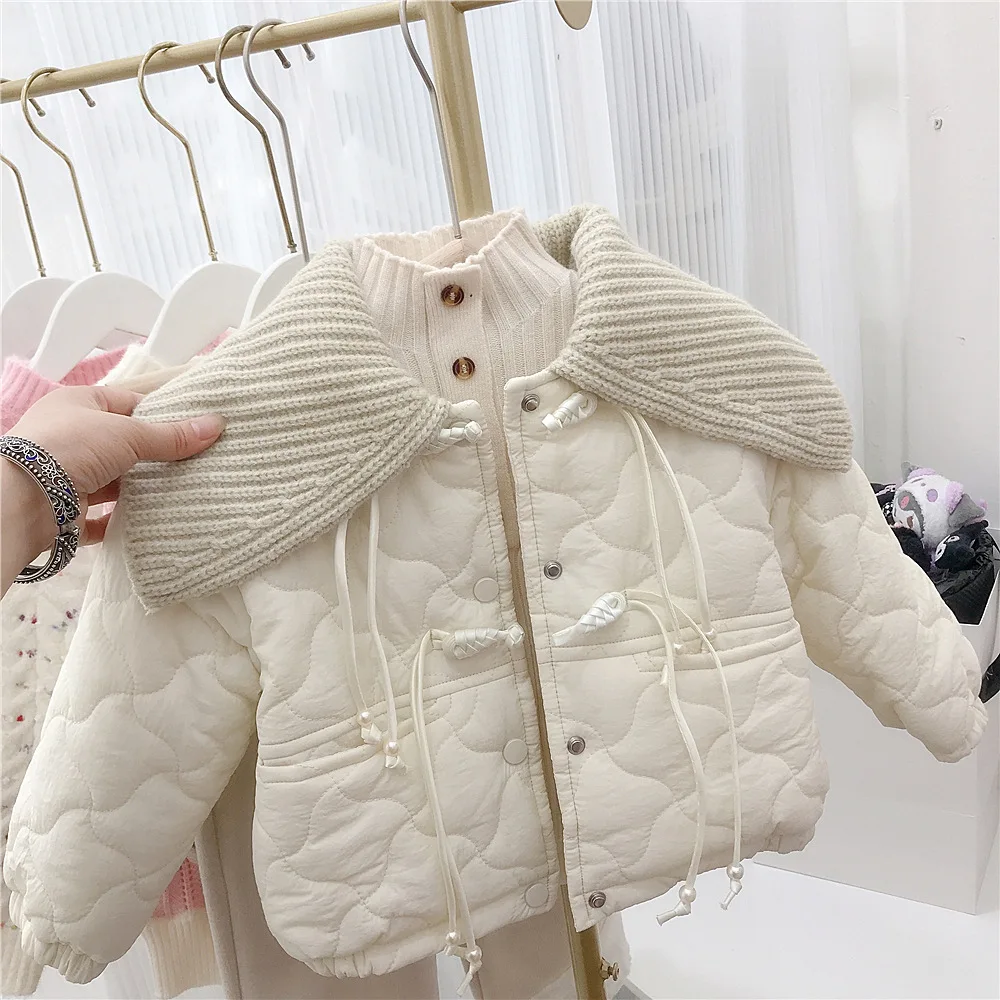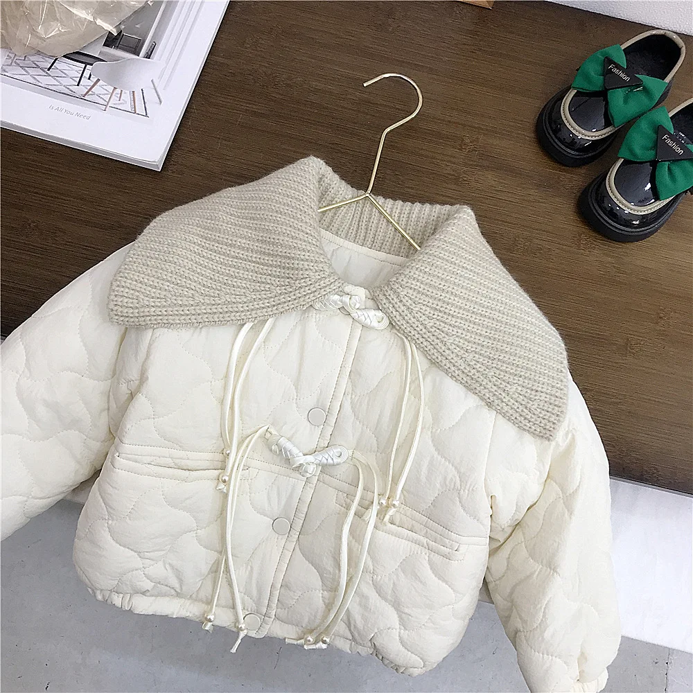 Introducing our stylish and cozy Girls' Flannel Cotton Coat, designed specifically for the autumn and winter seasons. This charming piece of children's outerwear perfectly blends comfort and fashion, making it an essential addition to any young girl's wardrobe. The coat features a retro buckle and a Korean version yarn collar, adding a touch of elegance and trendiness to your child's look.