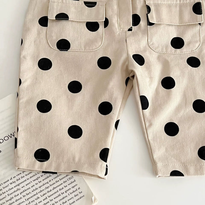 Crafted from the softest materials, this sleeveless romper ensures that your baby stays cozy and cool during the spring and autumn months. The playful round dot pattern adds a touch of whimsy, making this romper a standout piece in any baby's closet.