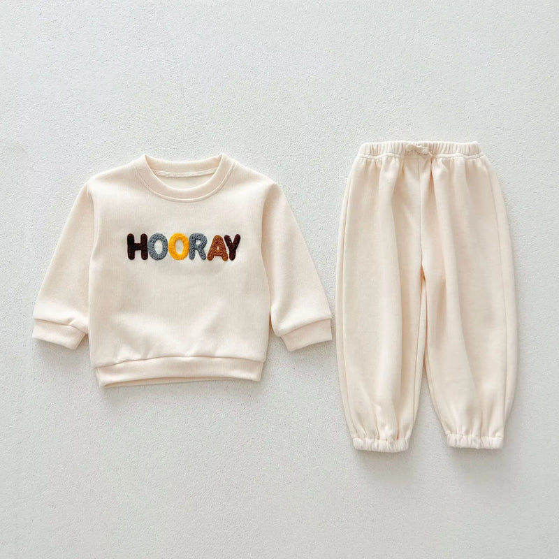 For the little girls who enjoy a touch of flair, our girls' letter hoodies suit is a perfect choice. The hoodie is adorned with a cute letter design that adds a whimsical touch to the outfit, making it a favorite for both parents and children alike. Paired with matching pants, this set is not only fashionable but also functional, keeping your child comfortable during all their autumn adventures.