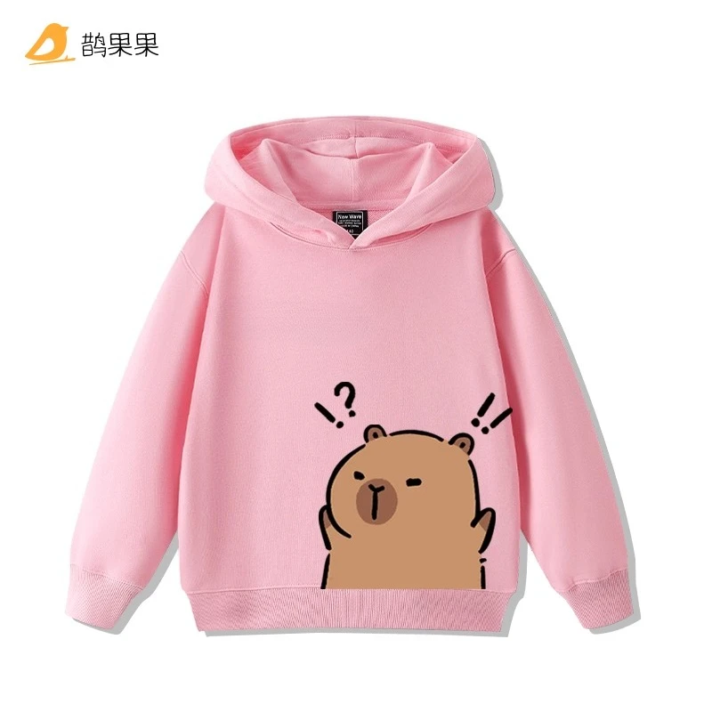 Children's Cartoon Fun Capybara Print Casual Hooded Sweatshirt
