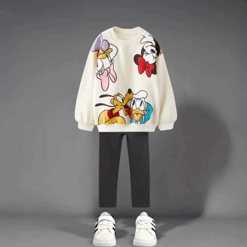 Introducing our delightful Autumn New Children Clothes Long Sleeve Suit, the perfect blend of style and comfort for your little one. This charming 2-piece set features a vibrant printed cartoon Minnie design that will bring joy and excitement to your child's wardrobe.